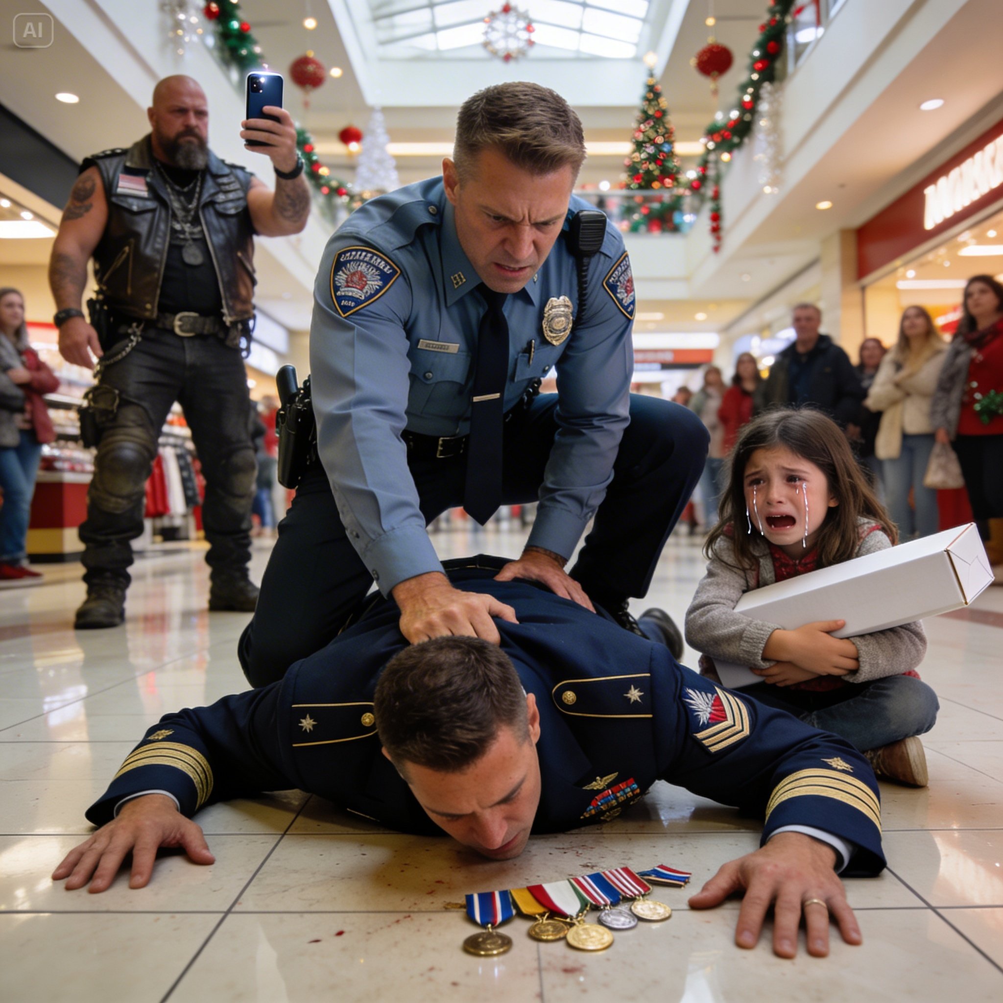 I survived three combat deployments, only to be br*tally taken down in front of my screaming daughter at our local mall by a cop who thought my Navy uniform was fake—but who was really watching us that day?