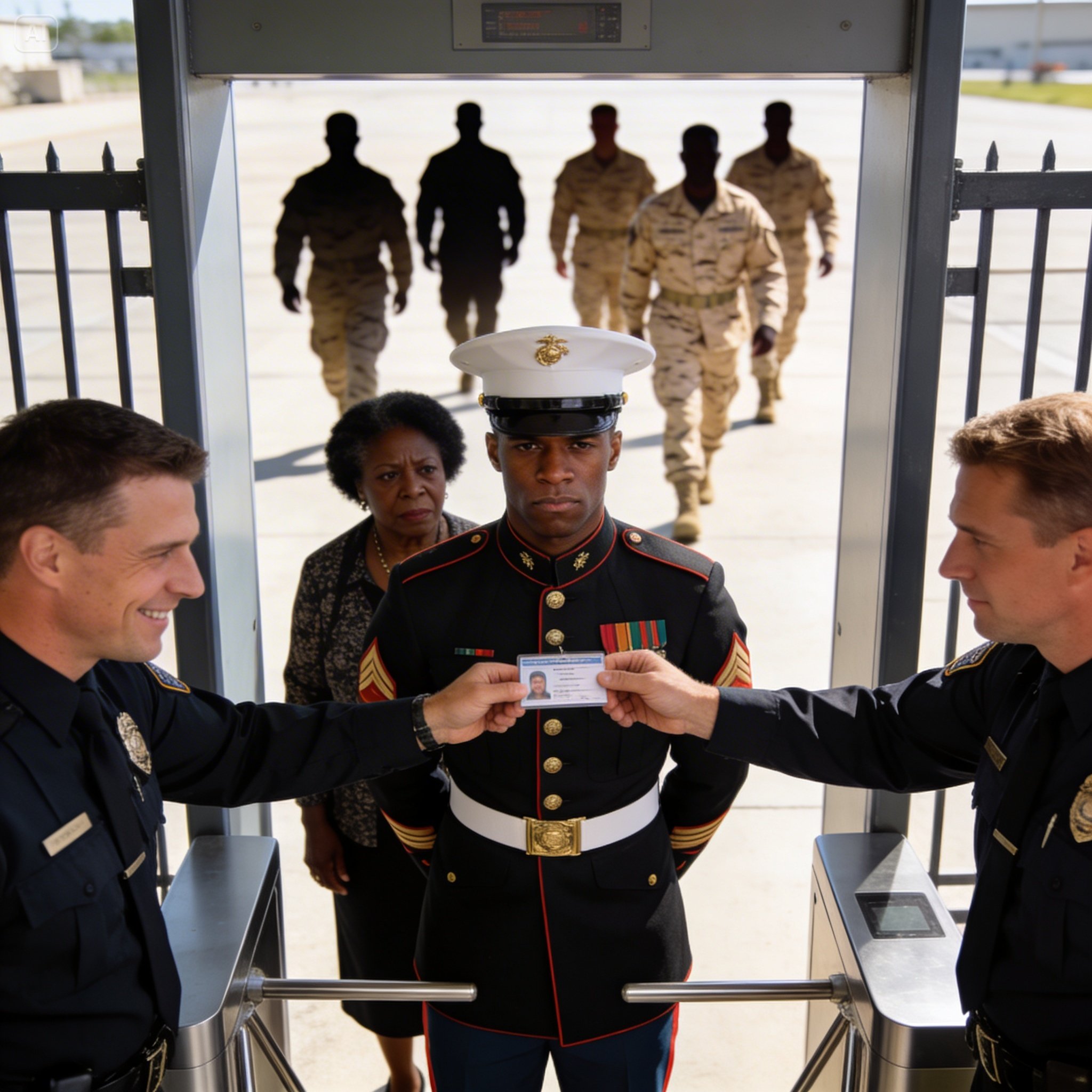 I survived thirteen weeks of brutal recruit training, only to be stopped at my own graduation gates by guards who said I didn't belong in uniform—until six mysterious men in camouflage stepped out of the shadows... Who were they?
